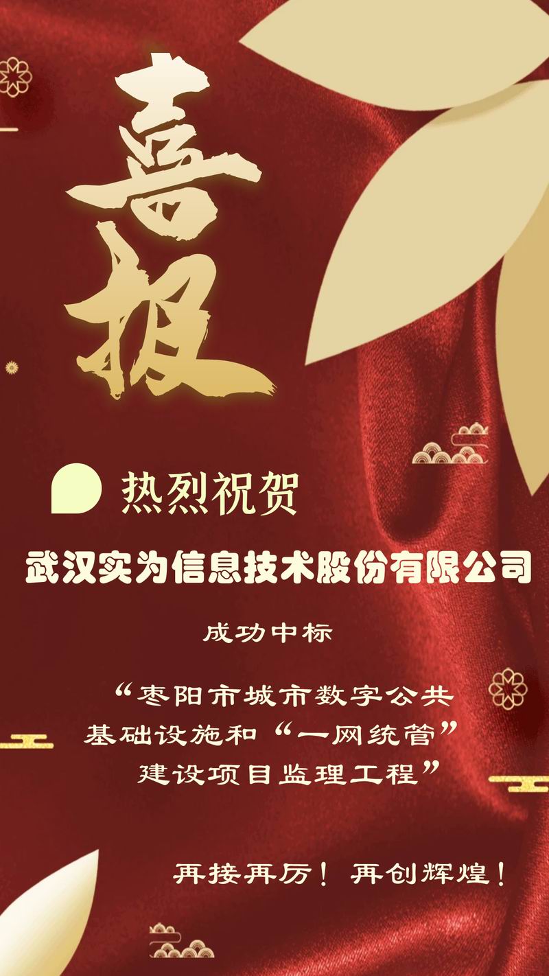成功中標(biāo)“棗陽(yáng)市城市數(shù)字公共基礎(chǔ)設(shè)備和“一網(wǎng)統(tǒng)管”建設(shè)項(xiàng)目監(jiān)理工程”